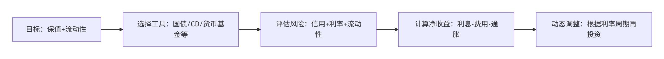 - 货币投资应作为”中转站”,长期闲置需考虑更高收益资产